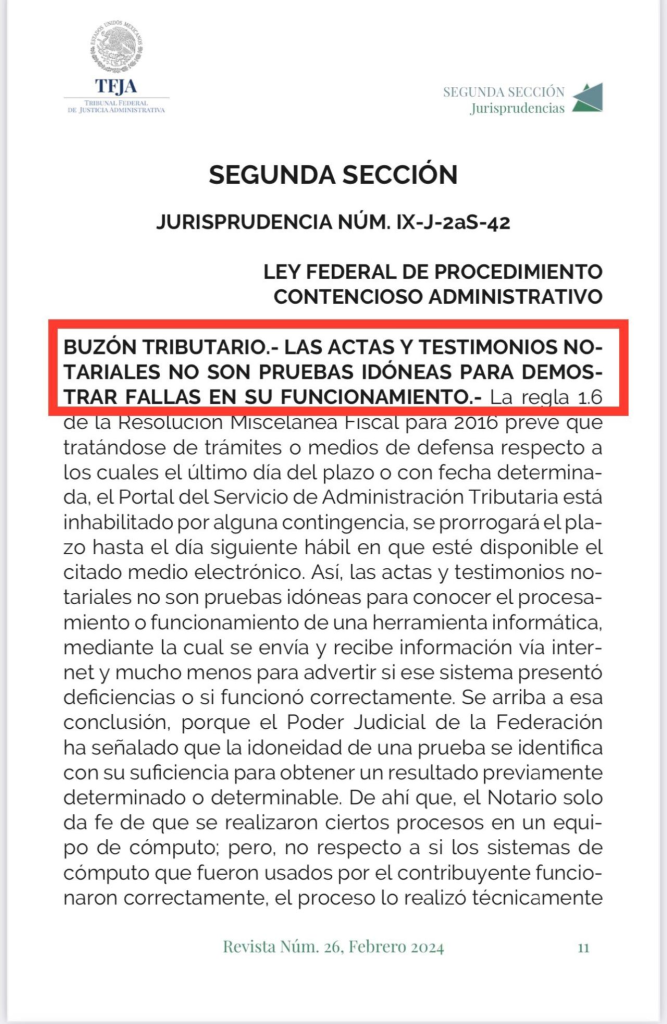•Las actas notariales por sí solas NO prueban fallas en el Buzón Tributario del SAT.