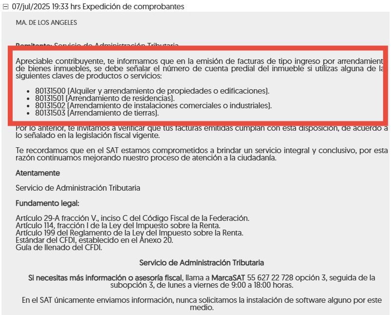 El SAT México – Servicio de Administración Tributaria exige que tus CFDI por rentas incluyan el número de cuenta predial.